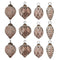 A 12 db barna üveg karácsonyfadísz készlet, mely eleganciát és titokzatosságot kölcsönöz a karácsonyi dekorációnak.