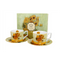 Porcelán két személyes csésze szett aljjal Van Gogh Napraforgók mintával, díszdobozban.
