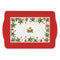 Karácsonyi műanyag konyhai tálca Christmas Berries kollekcióból. A tálcát át zöld és piros magyal bogyók és vörösbegy madárka díszítik.