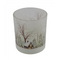 Karácsonyi fehér üveg mécsestartó házikóval fenyős tájon 7x7x8 cm
