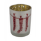 Karácsonyi üveg mécsestartó piros zoknis nagy.