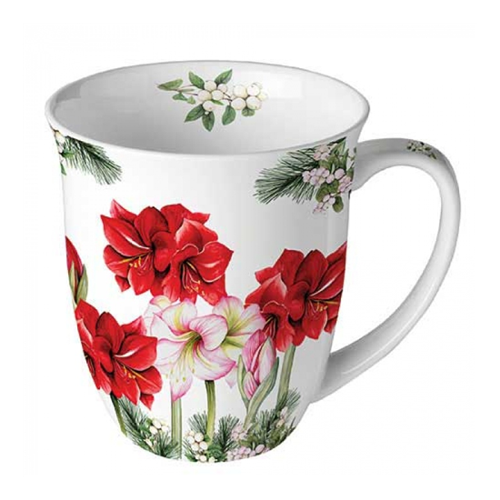 Blooming amaryllis white karácsonyi porcelán bögre 0,4l Minőségi porcelán bögre az Ambiente kollekcióból. Mosogatógépben használható.