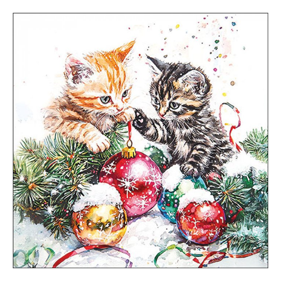 Karácsonyi szalvéta Adorable kittens 33x33 cm 20 db-os – háromrétegű, minőségi holland papírszalvéta, amely elegáns kiegészítője lehet az ünnepi asztalnak. Ideális választás karácsonyra, szalvéta karácsonyi terítékhez és ünnepi dekorációhoz.