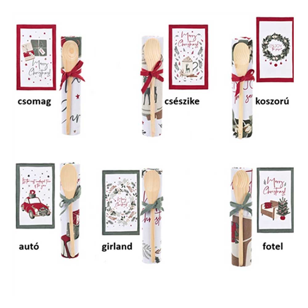 Karácsonyi ajándékszett pamut konyharuha és fakanál 6 féle