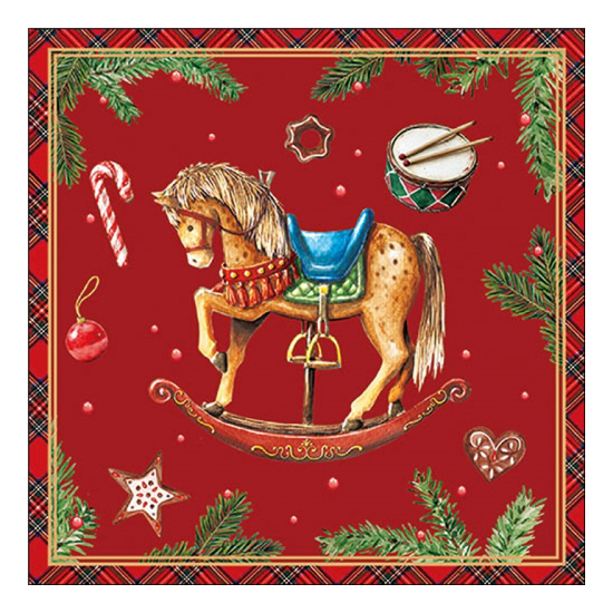 Karácsonyi szalvéta Classic rocking horse red 33x33 cm 20 db-os