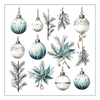 Karácsonyi szalvéta Hanging decorations silver 33x33 cm 20 db-os – háromrétegű, minőségi holland papírszalvéta, amely elegáns kiegészítője lehet az ünnepi asztalnak. Ideális választás karácsonyra, szalvéta karácsonyi terítékhez és ünnepi dekorációhoz.