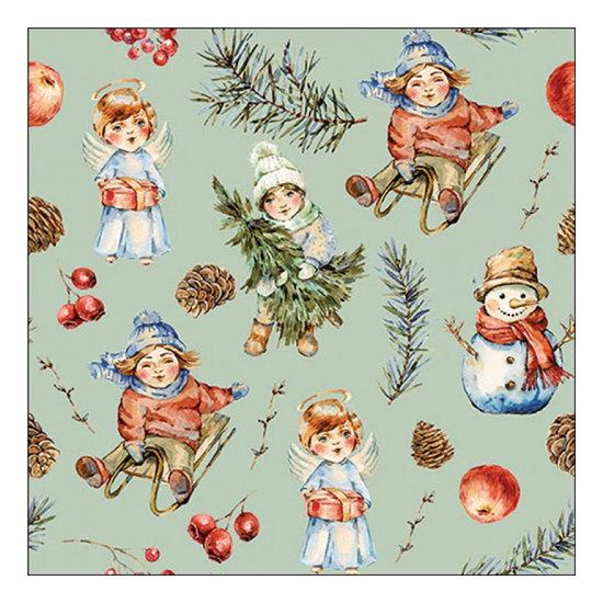 Karácsonyi szalvéta Playing outside green 33x33 cm 20 db-os