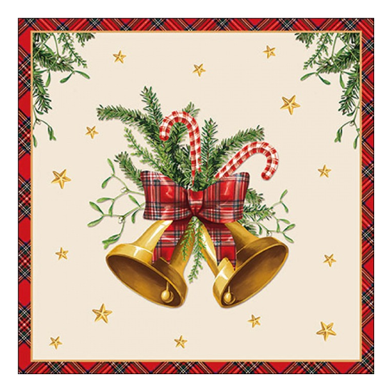 Karácsonyi szalvéta Scottish bells cream 33x33 cm 20 db-os